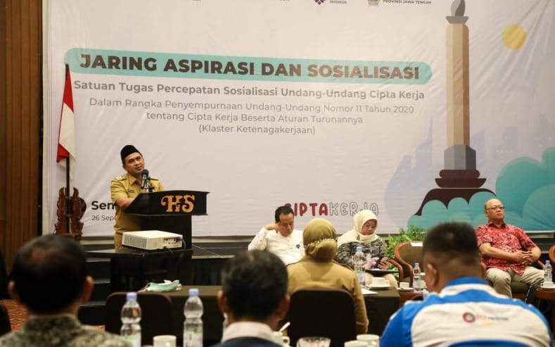 Jaring Aspirasi dan Sosialisasi, Pemprov Jateng Libatkan Aspirasi Serikat Buruh dan Pekerja Guna Sempurnakan UU Cipta Kerja ~ Headline.co.id (Semarang). Dalam rangka Penyempurnaan Undang-Undang Nomor 11 Tahun 2020 tentang Cipta Kerja beserta aturan turunannya, Dinas Tenaga Kerja dan Transmigrasi (Disnakertrans) Provinsi Jawa Tengah memfasilitasi serikat buruh dan pekerja seprovinsi ini, dengan menjaring aspirasi bersama Satuan Tugas Percepatan Undang-undang Cipta Kerja (UUCK), Senin (26/9/2022).