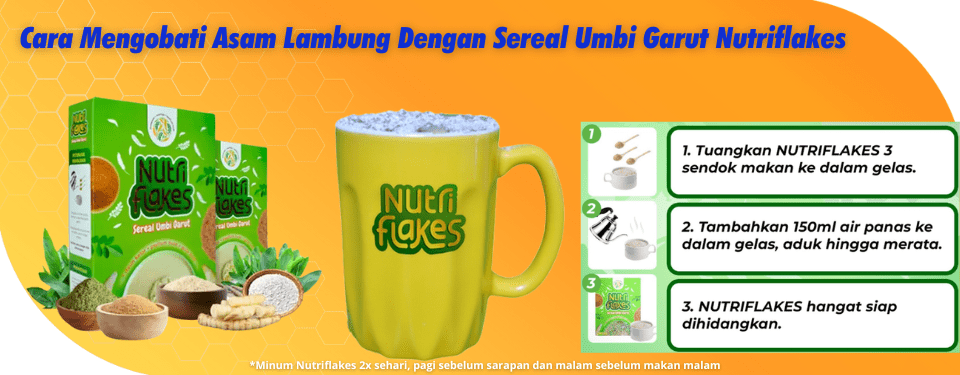 Lalu bagaimana cara mengkonsumsi Sereal Umbi Garut Nutriflakes? Kamu bisa mengkonsumsinya 2 kali sehari, pagi sebelum sarapan dan malam sebelum makan malam. Kamu juga bisa mengkonsumsi sereal umbi garut Nutriflakes ini sebagai pengganti hidangan utama untuk program penyembuhan penyakit asam lambung atau GERD. Saat mengkonsumsinya harus konsisten agar dapat sembuh. Selain itu, Anda juga tetap menjaga makanan. Kurangi konsumsi makanan yang memicu naiknya asam lambung.