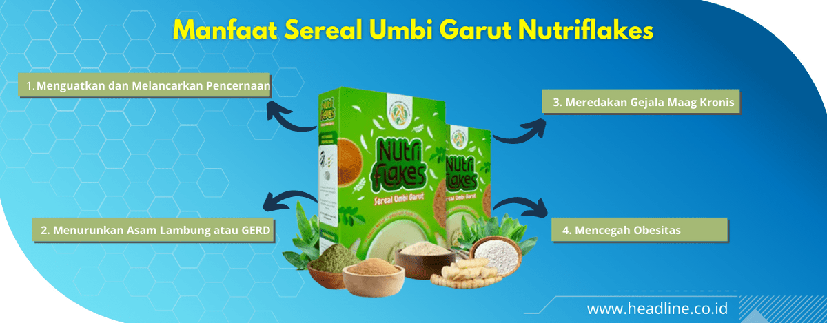 Dilansir Headline.co.id dari situs resmi nutriflakes.id, Sereal Umbi Garut Nutriflakes ini memiliki berbagai macam manfaat antara lain sebagai berikut: