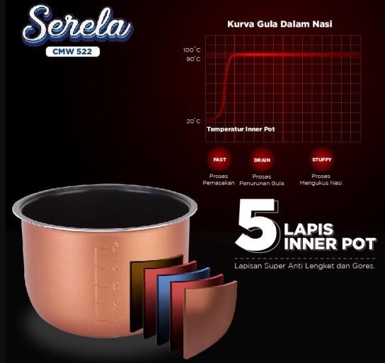 - Tersedia berbagai mode memasak yang dapat disesuaikan dengan kebutuhan pengguna, seperti mode memasak nasi putih, nasi merah, bubur, dan masih banyak lagi.
