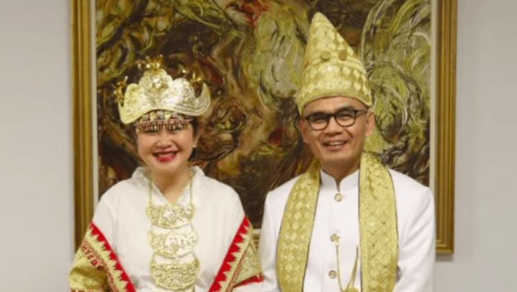 Dubes RI untuk Inggris Desra Percaya dan istri mengenakan pakaian adat Lampung saat menghadiri penobatan Raja Charles III. Foto: Instagram @desrapercaya