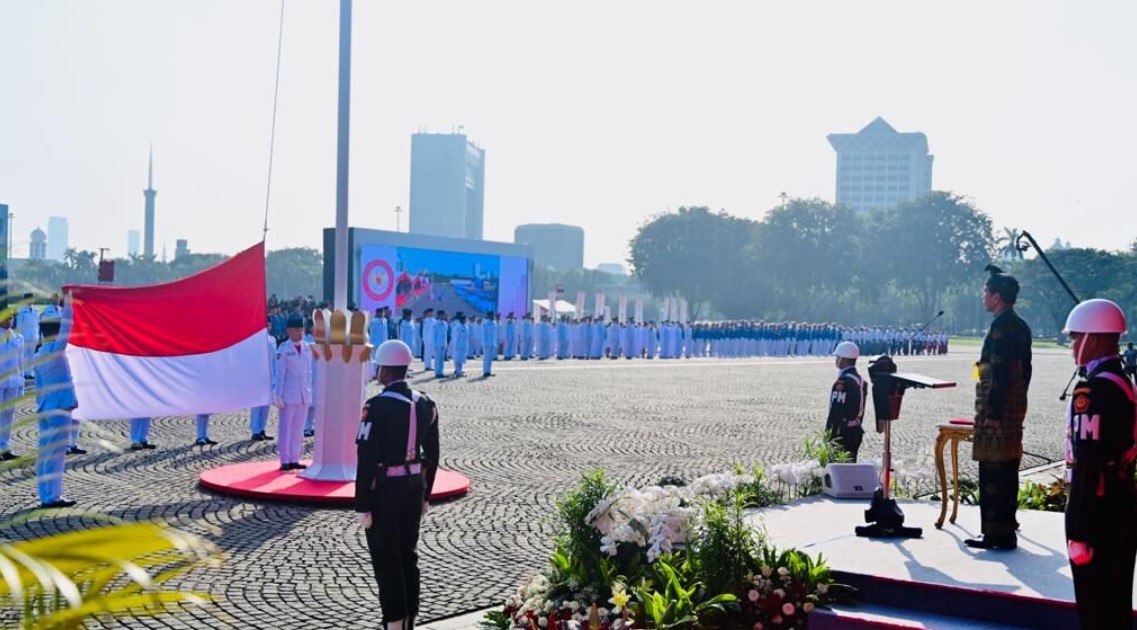 Berbusana Adat Kesultanan Deli, Presiden Pimpin Upacara Peringatan Harlah Pancasila di Monas ~ Headline.co.id (Jakarta). Presiden Joko Widodo bertindak selaku inspektur upacara memimpin Upacara Peringatan Hari Lahir Pancasila yang digelar di Sisi Selatan Monumen Nasional (Monas), Jakarta, pada Kamis, 1 Juni 2023. Presiden Jokowi yang tampak mengenakan pakaian adat Kesultanan Deli tiba di lapangan upacara sekitar pukul 07.58 WIB bersama dengan Wakil Presiden Ma’ruf Amin.