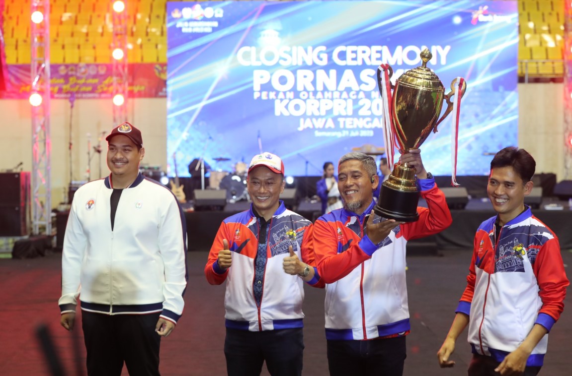 “Alhamdulillah Jawa Tengah menjadi juara umum dengan memperoleh 11 emas, 11 perak, dan 12 perunggu. Ini menjadi kebanggaan, karena selama ini Jawa Tengah belum pernah menjadi juara umum Pornas Korpri. Ini sekaligus menjadi motivasi kita dan ke depannya mudah-mudahan lebih baik lagi,” ujar sekda.