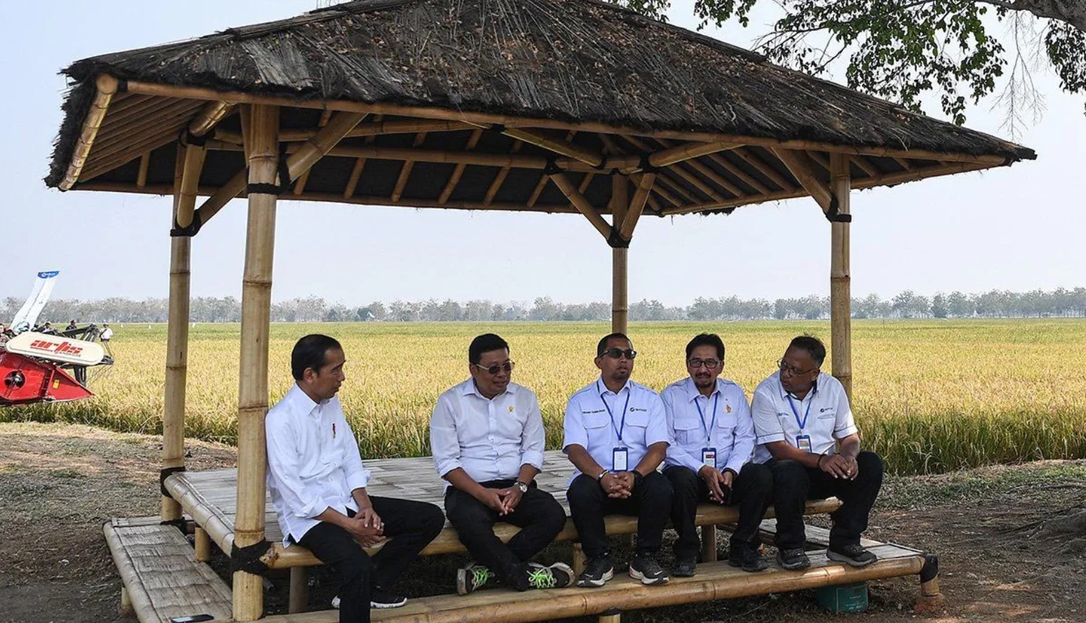 presiden jokowi meninjau panen padi di subang