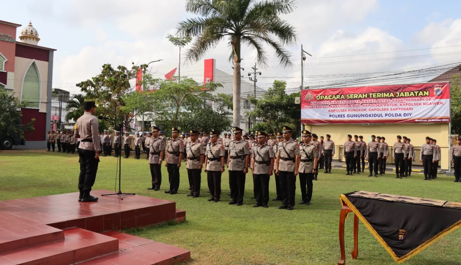 Headline.co.id (Gunungkidul). Sebanyak 10 pejabat di lingkungan Polres Gunungkidul mengalami rotasi jabatan yang dilaksanakan dalam sebuah upacara serah terima jabatan di Mapolres Gunungkidul pada tanggal 30 Oktober lalu. Upacara tersebut dipimpin langsung oleh Kapolres Gunungkidul, AKBP Edy Bagus Sumantri.