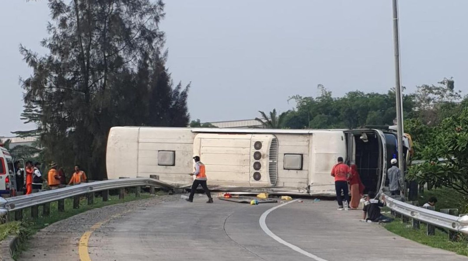 Headline.co.id (Purwakarta) ~ Kecelakaan tragis terjadi di ruas Tol Cipali pada Jumat sore sekitar pukul 15.15 WIB, saat bus PO Handoyo mengalami kecelakaan tunggal. Insiden ini menyebabkan 12 penumpang meninggal dunia dan tujuh lainnya mengalami luka-luka.