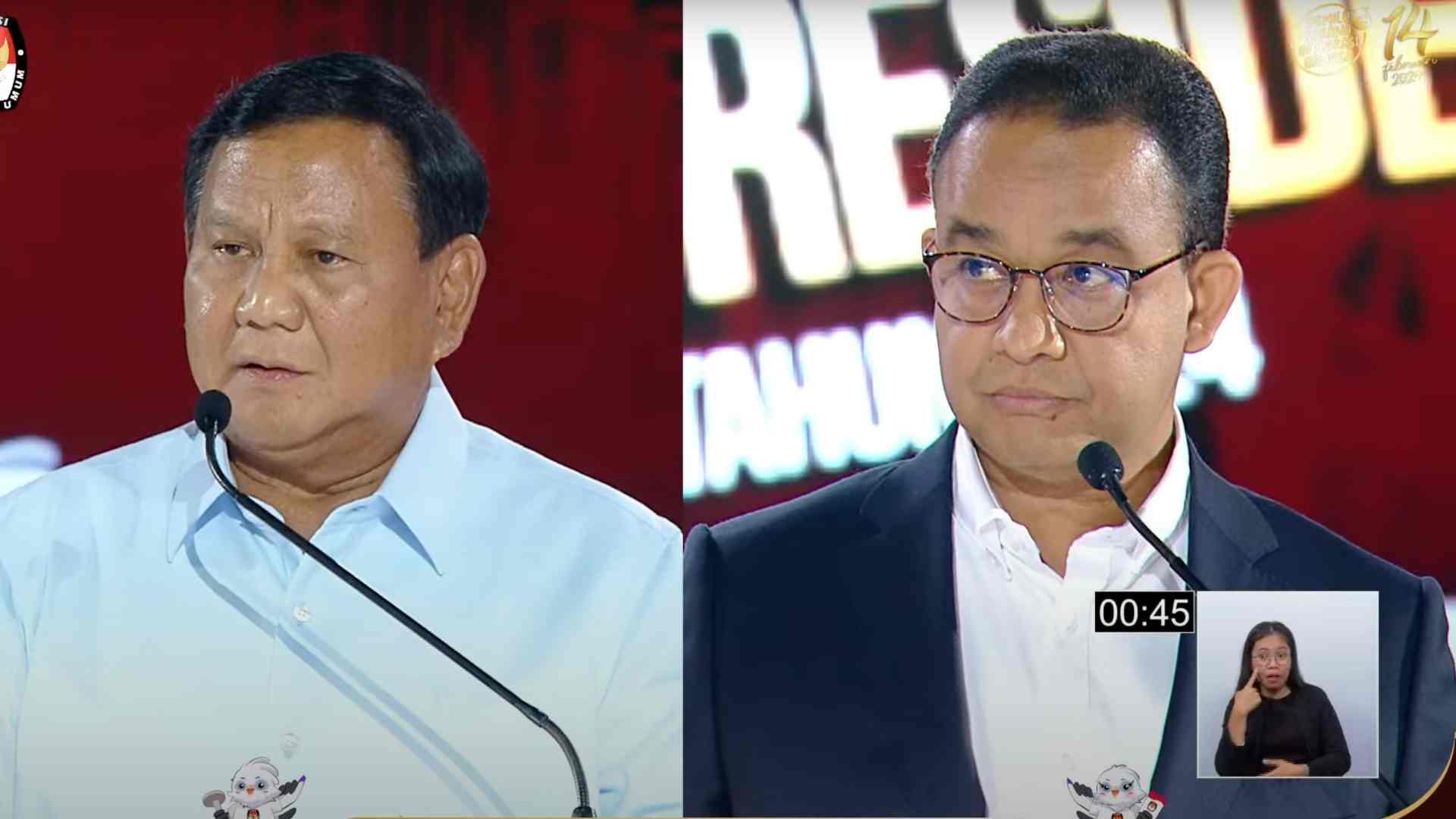 Foto Anies dan Prabowo dalam Debat Capres Ke 3 (Tangkapan Layar Youtube KPU RI)