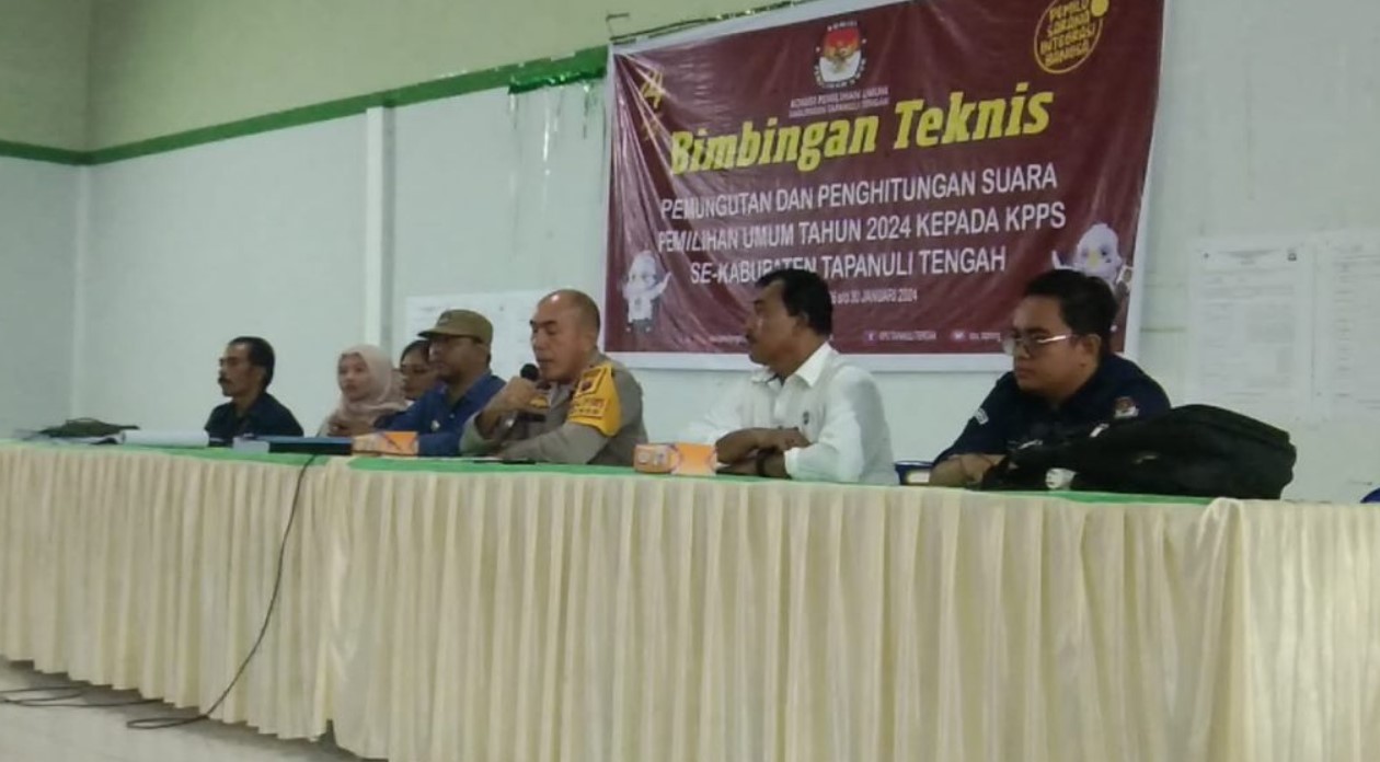 Headline.co.id, Tapanuli Tengah, Senin (29/1/2024) – Polres Tapanuli Tengah turut hadir memberikan sambutan dan himbauan terhadap anggota Kelompok Penyelenggara Pemungutan Suara (KPPS) dalam persiapan menyambut Pemilihan Umum tahun 2024. Acara ini berlangsung di empat lokasi berbeda, di mana Bimbingan Teknis (Bimtek) KPPS diselenggarakan oleh Komisi Pemilihan Umum (KPU) Kabupaten Tapanuli Tengah.