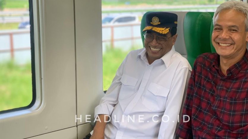 Budi Karya dan Ganjar Pranowo asik menikmati perjalanan menuju bandara menggunakan KA BIAS