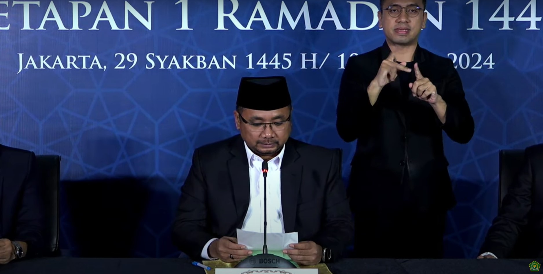 “Sidang Isbat secara mufakat menetapkan bahwa 1 Ramadan 1445 H jatuh hari Selasa, 12 Maret 2024 Masehi,” kata Menag Yaqut dalam pengumumannya.