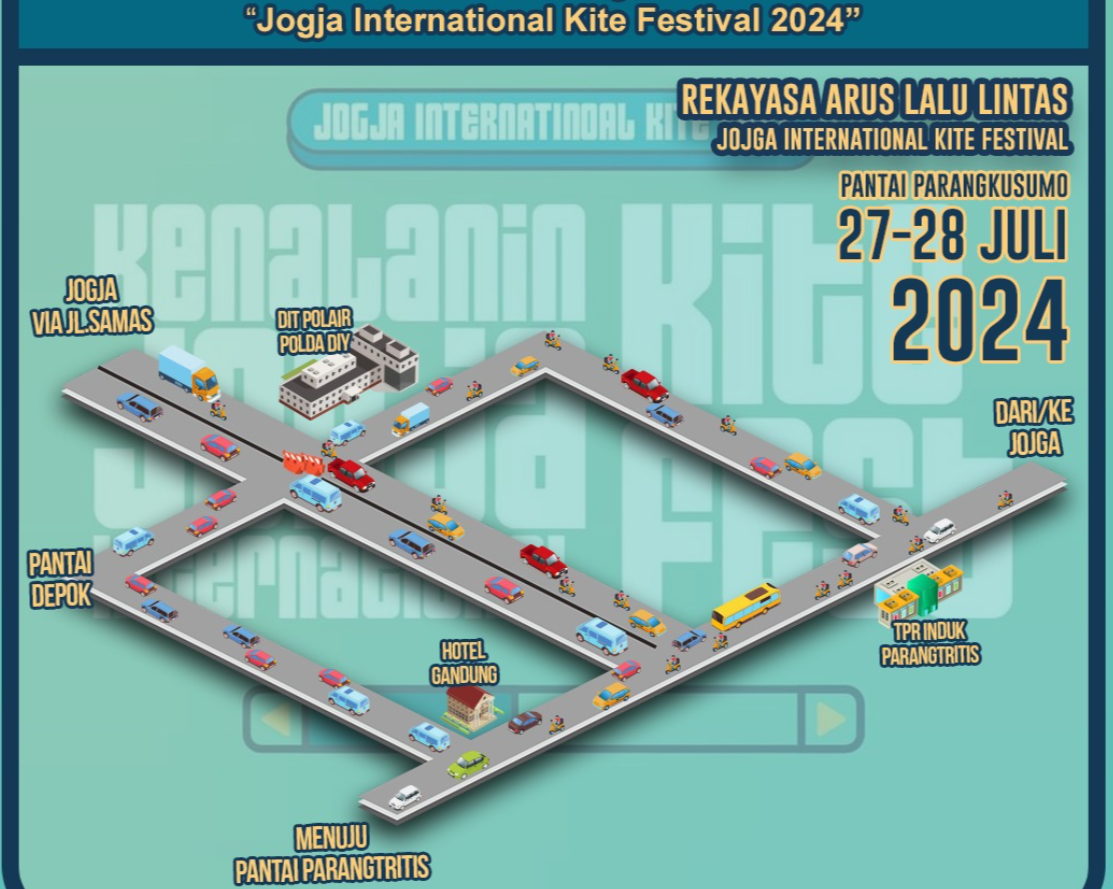 Headline.co.id, Bantul ~ Selama berlangsungnya acara Jogja International Kite Festival (JIKF) 2024, sejumlah ruas jalan di Bantul akan mengalami rekayasa lalu lintas. Festival layang-layang bertaraf internasional ini akan digelar pada 27 hingga 28 Juli 2024 di kawasan Pantai Parangkusumo, Kretek, Bantul.