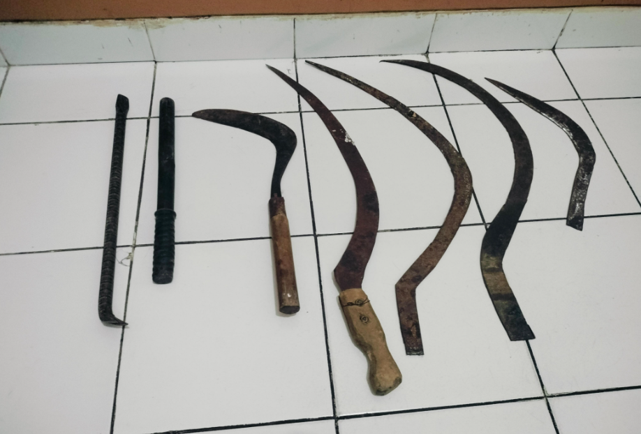 Merasa curiga, petugas kemudian mendatangi rumah tersebut. Di dalam rumah, ditemukan sejumlah motor dan remaja. Setelah dilakukan penggeledahan, petugas menemukan berbagai senjata tajam yang disembunyikan di bawah tempat tidur.
