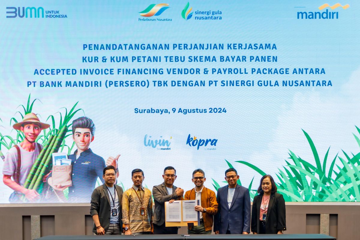 Kemitraan Bank Mandiri dan SGN direalisasikan melalui penandatanganan perjanjian kerja sama di Surabaya pada 9 Agustus lalu. Fasilitas KUM yang dirancang khusus untuk petani tebu dengan skema bayar panen memungkinkan pengaturan arus kas yang lebih fleksibel. Kewajiban pembayaran disesuaikan dengan waktu panen.