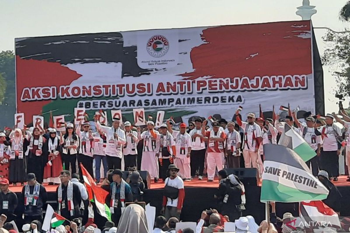 Aksi hari itu juga digelar dalam rangka memperingati Hari Konstitusi Indonesia dan HUT ke-79 RI. Massa yang tergabung dalam Aliansi Rakyat Indonesia Bela Palestina (ARI-BP) berkumpul di Monas sejak pagi hari, mengenakan busana bernuansa merah putih dan atribut pendukung Palestina.