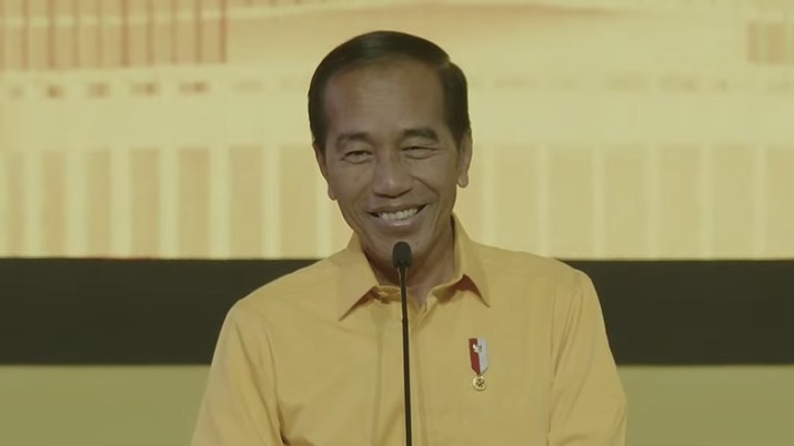 Jokowi pun dengan blak-blakan mengaku sengaja mengenakan kemeja berwarna kuning pada malam itu. “Artinya Partai Golkar ini Indonesia banget,” ujarnya.