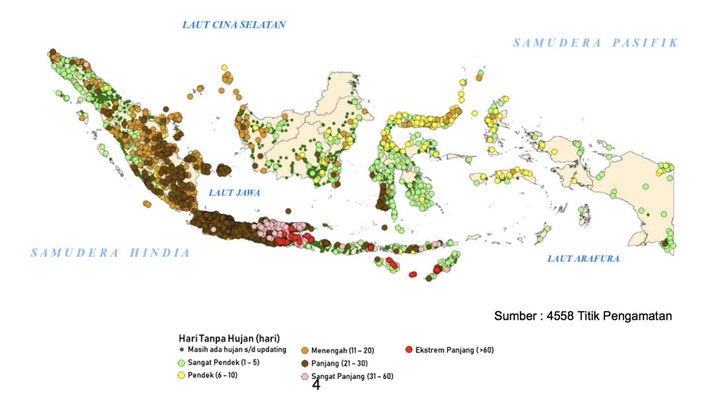 HTH kategori Sangat Panjang (31-60 hari) terjadi di wilayah Jambi, Kepulauan Bangka Belitung, Sumatra Selatan, Jawa Barat, Jawa Tengah, Jawa Timur, NTB, NTT, Sulawesi Tengah, Sulawesi Selatan, Maluku, dan Papua.
