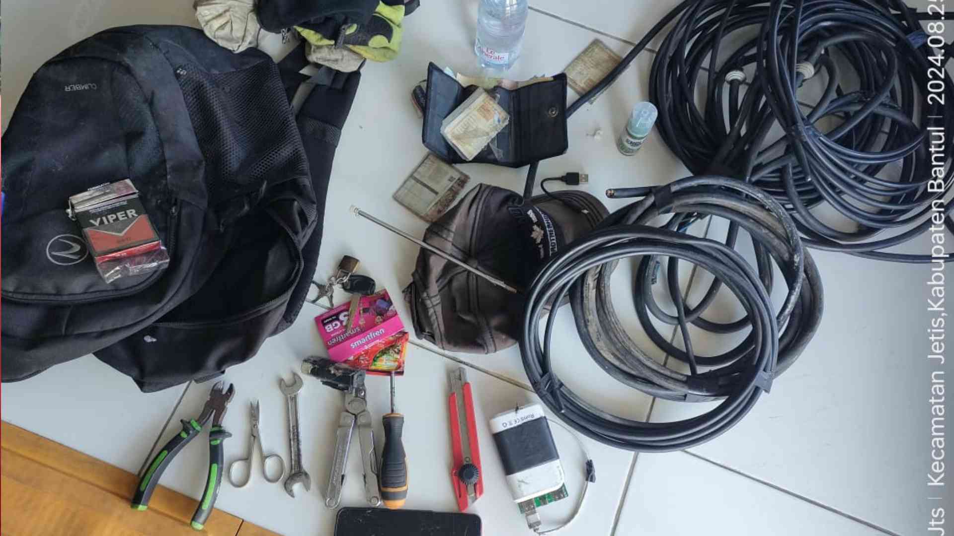 Tidak hanya itu, polisi juga menemukan potongan-potongan kabel yang telah tergulung rapi, yang diduga kuat hasil dari tindakan pencurian tersebut. Estimasi kerugian materi akibat pencurian ini mencapai Rp 15.000.000,-. Kabel yang dicuri meliputi kabel tembaga, kabel power, kabel penerangan, serta kabel antena. Operator pengguna tower BTS ini adalah Smartfren dan Indosat, sementara tower BTS tersebut milik PT Protelindo yang beralamat di Jakarta.