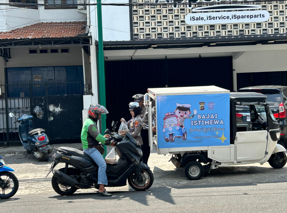 BAJAI ISTIMEWA: Langkah Polresta Sleman Dukung Kondusifitas Pilkada 2024 ~ Headline.co.id (Sleman). Dalam rangka menjaga situasi kondusif menjelang Pemilihan Kepala Daerah (Pilkada) 2024, Satuan Lalu Lintas (Satlantas) Polresta Sleman mengadakan kegiatan sosial bertajuk BAJAI ISTIMEWA (Berbagi Rejeki Istimewa). Aksi ini dilaksanakan pada Jumat, 4 Oktober 2024, di Jl. Babarsari, Depok, Sleman.