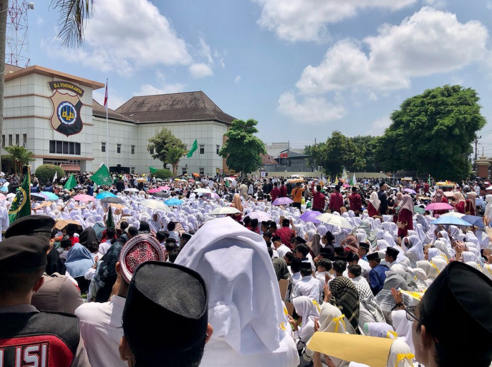 Massa santri mulai memadati halaman Mapolda sejak pagi, didampingi jajaran pengurus Nahdlatul Ulama (NU) DIY serta perwakilan organisasi masyarakat lainnya. Aksi tersebut dipenuhi orasi dari para pemimpin pondok pesantren, termasuk ibu nyai pimpinan pesantren tempat kedua korban belajar. Seruan untuk mempercepat penanganan kasus ini menjadi tuntutan utama dalam aksi damai ini.