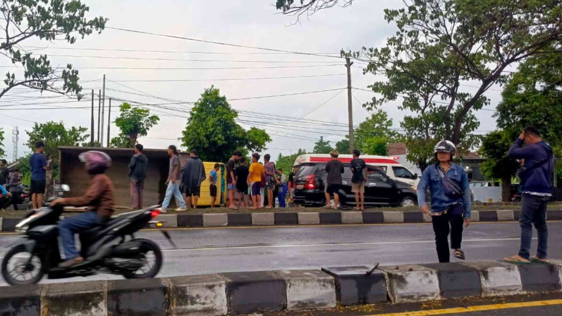 Headline.co.id (Bantul) ~ Sebuah kecelakaan lalu lintas tunggal melibatkan sebuah truk dump terjadi di Jalan Ring Road Ahmad Yani, tepatnya di Dusun Sarirejo, Singosaren, Banguntapan, Bantul, pada Jumat sore (22/11). Truk bernomor polisi AB-8659-BK oleng hingga menabrak pepohonan dan tiang lampu jalan sebelum terguling di jalur cepat. Akibatnya, tiga orang mengalami luka-luka dan harus dilarikan ke rumah sakit.