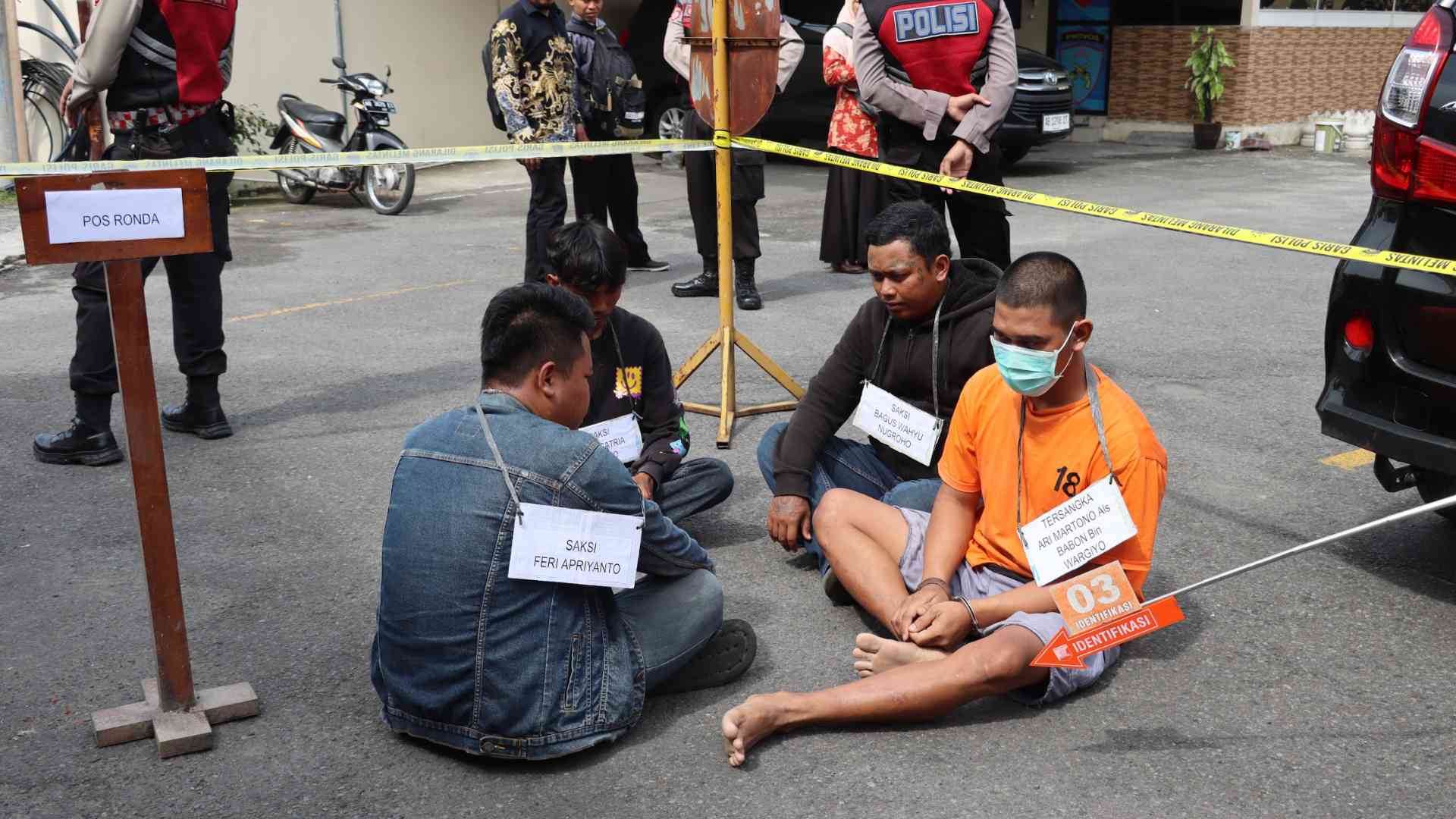 Tersangka berinisial AM (28) dihadirkan dalam proses ini untuk memperagakan kronologi kejadian. Sementara itu, peran korban diperankan oleh boneka sebagai pengganti.