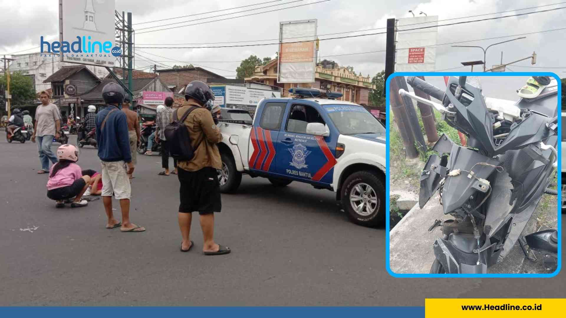 Headline.co.id (Bantul) ~ Kecelakaan lalu lintas terjadi di simpang empat Wojo, Jalan Ring Road Selatan, Bangunharjo, Sewon, Bantul. Insiden ini melibatkan mobil Mitsubishi Colt H 8269 DC dan sepeda motor Honda Beat AB 5724 RV pada pukul 15.30 WIB. Akibat kecelakaan tersebut, seorang ibu dan anak kecil yang dibonceng mengalami luka-luka.