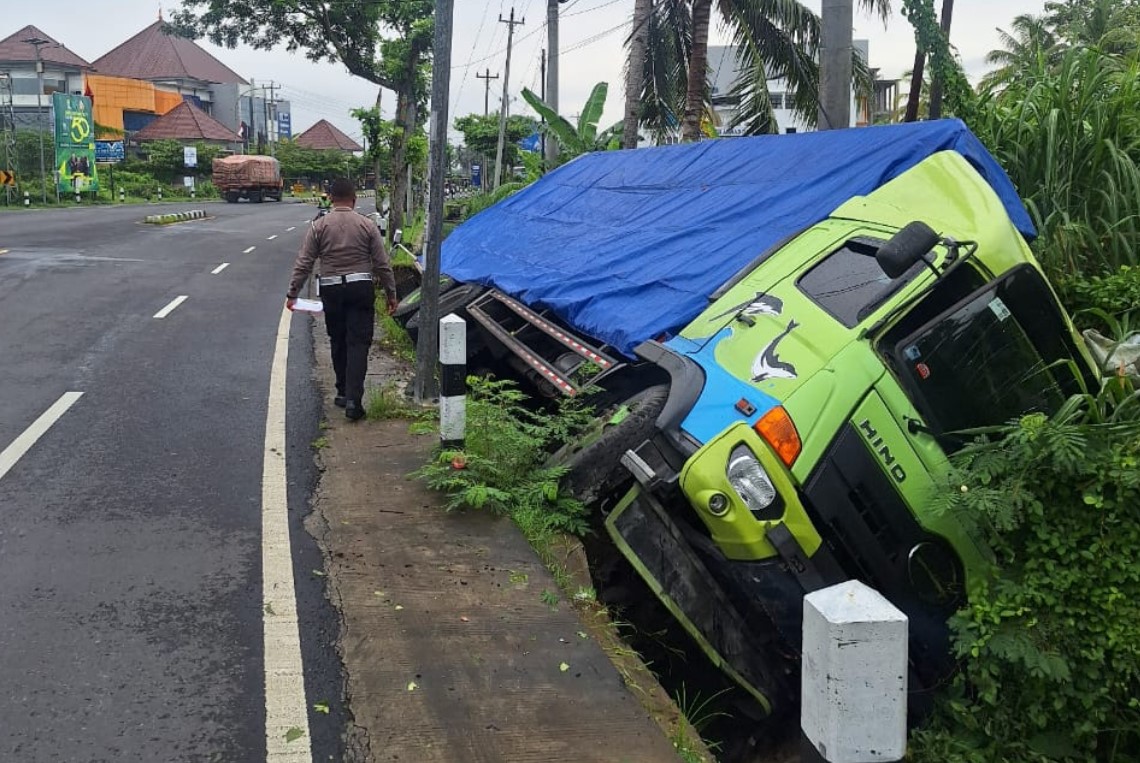 Menurut keterangan polisi, kendaraan yang dikemudikan oleh Nur Chamid (48), warga Kelurahan Pekembaran, Slawi, Tegal, Jawa Tengah, melaju dari arah utara menuju selatan. Sesampainya di tikungan, truk tronton tersebut diduga lepas kendali dan oleng ke kiri. Kendaraan besar ini kemudian menabrak beberapa patok jalan sebelum akhirnya masuk ke parit.