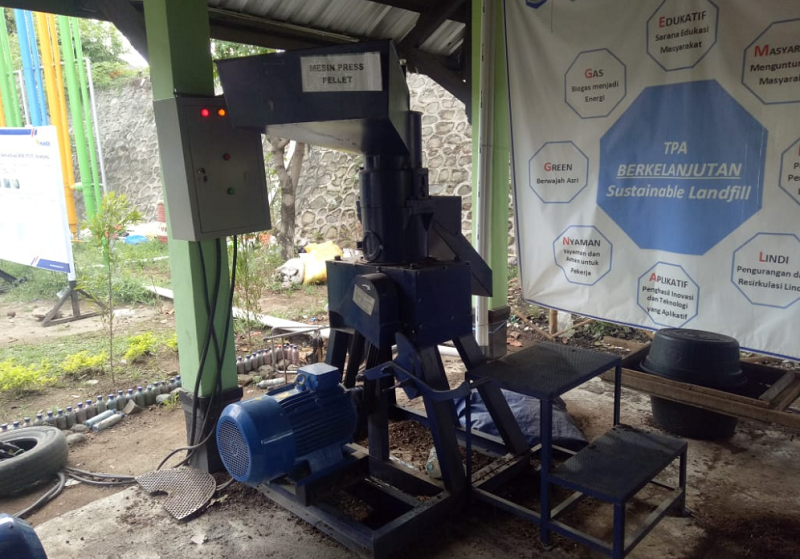 Setelah itu, sampah dimasukkan ke mesin pencacah dan tahap akhir melalui proses peletisasi. Mesin-mesin yang digunakan merupakan bagian dari program CSR PLN.