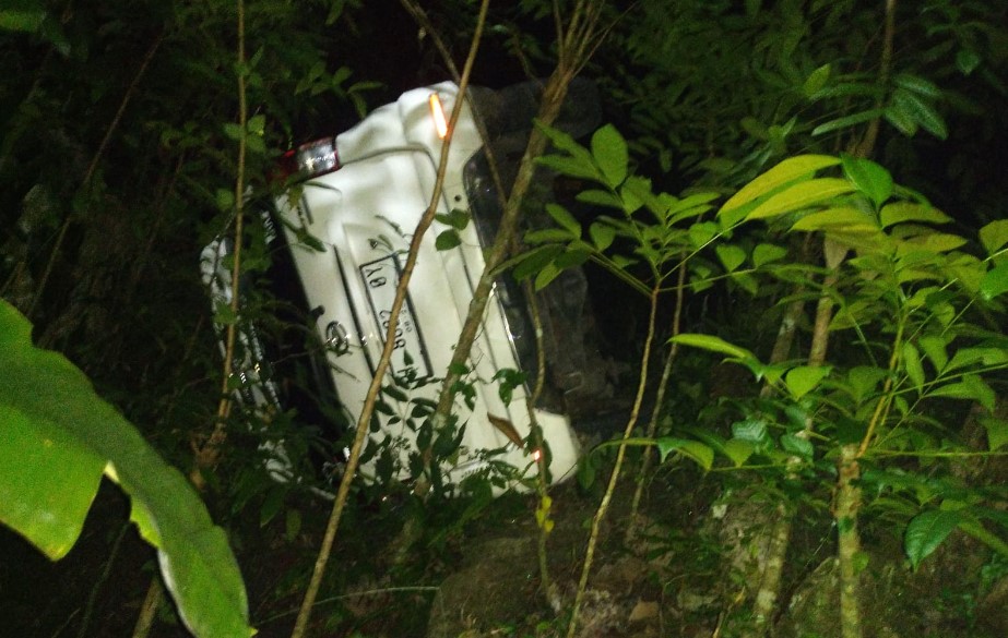Jeffry kendaraan melaju dari arah barat ke timur dengan kecepatan sedang. Saat melewati jalan menanjak dan menikung, pengemudi diduga kehilangan konsentrasi, sehingga mobil mundur tak terkendali dan terperosok ke dalam jurang.