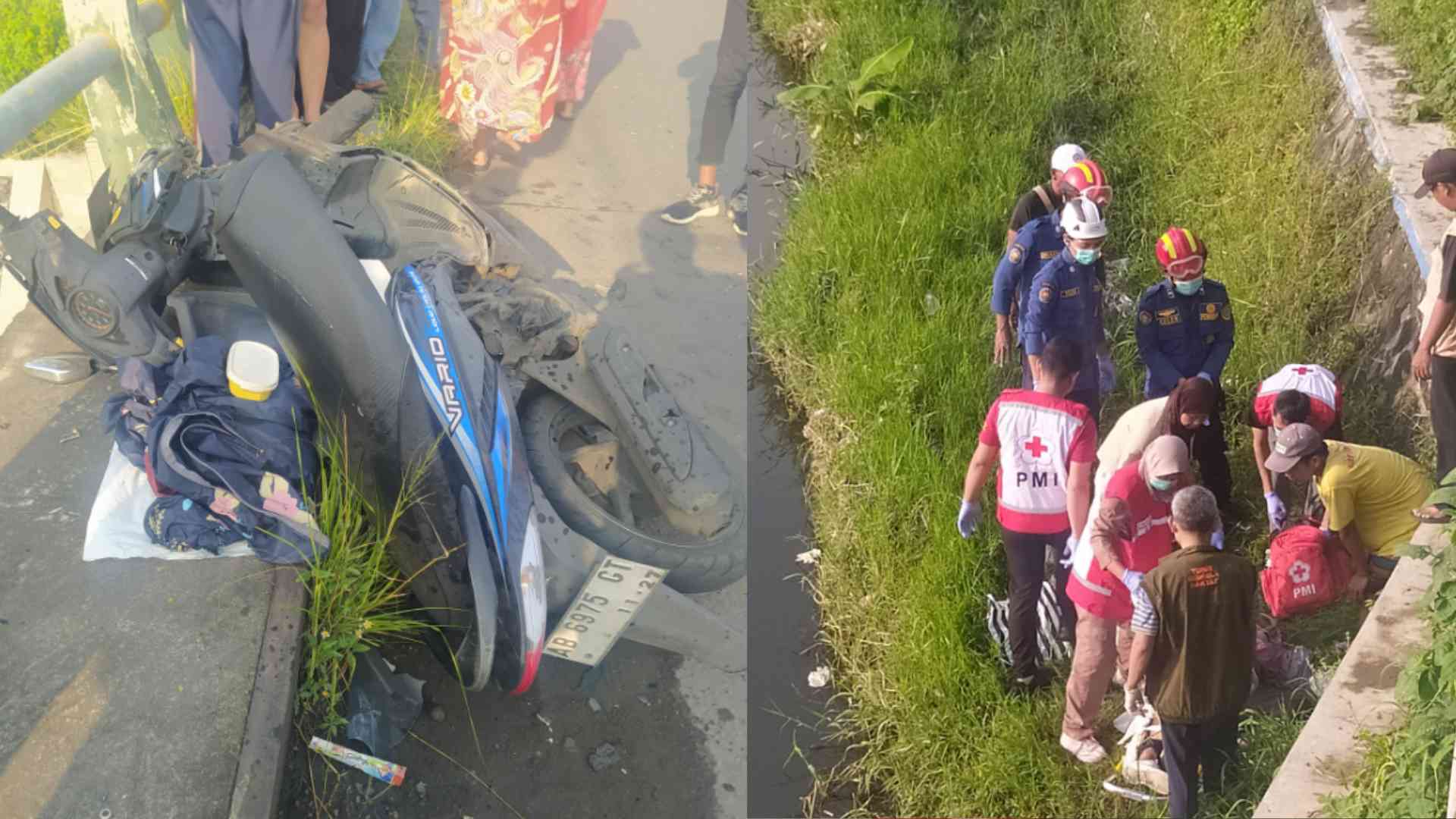 Benturan keras menyebabkan pengendara motor terpental ke dalam sungai di bawah jembatan. Korban segera dievakuasi dan dilarikan ke RS Hardjolukito untuk mendapatkan perawatan medis.