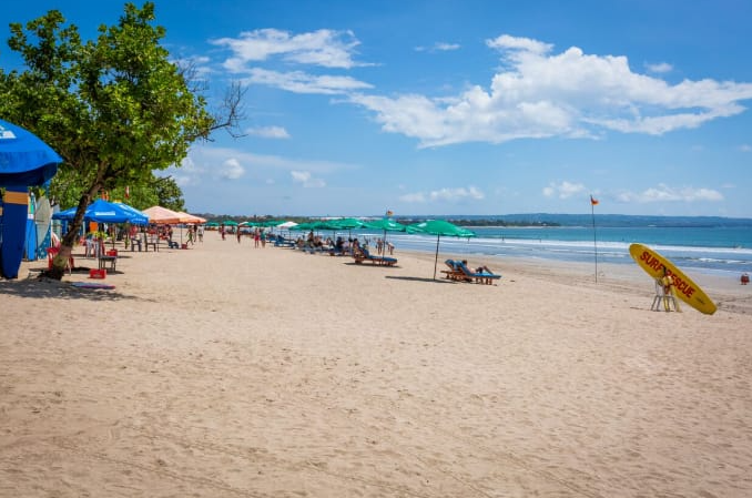 Terletak di Desa Kuta, Kecamatan Kuta, Kabupaten Badung, Bali, Pantai Kuta membentang sepanjang 5 kilometer, mulai dari Tuban di selatan hingga Seminyak di utara. Pantai ini terkenal dengan ombaknya yang ideal untuk berselancar, terutama bagi pemula, serta sebagai tempat rekreasi yang menyajikan suasana santai dan meriah.