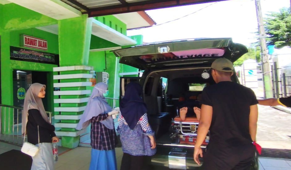 Melihat kejadian tersebut, rekan-rekan korban segera meminta bantuan kepada petugas Satlinmas yang berjaga. Dengan sigap, petugas mengevakuasi Nagiza dan membawanya ke Puskesmas II Tepus menggunakan ambulans Satlinmas.