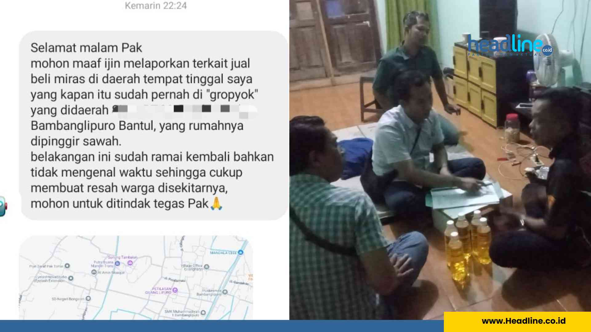 Miras yang disita diketahui berupa cairan berwarna oranye dan diduga merupakan minuman beralkohol jenis ciu al tanpa merk dagang. Barang bukti tersebut kini diamankan di Mapolres Bantul untuk proses hukum lebih lanjut.