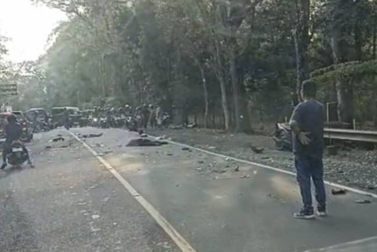 Dua korban, seorang pria dewasa dan seorang ibu paruh baya yang diketahui membawa keranjang (kronjot), dilaporkan meninggal dunia di tempat kejadian. Tubuh mereka ditemukan tak bergerak di tengah jalan, sementara puing-puing motor, pecahan kaca, dan serpihan kendaraan berserakan di sepanjang aspal.