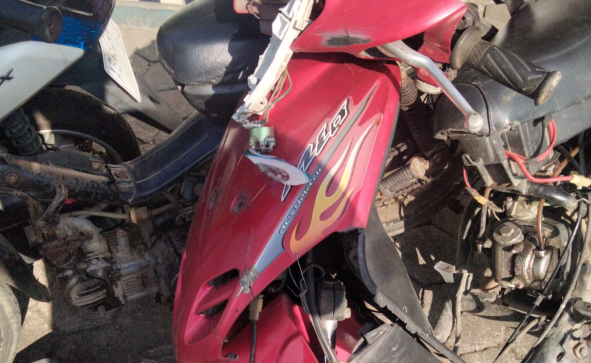“Akibat tabrakan, bagian roda depan sepeda motor mengalami kerusakan parah (bledos) dan knalpot kendaraan lepas,” ujar AKP Jeffry.
