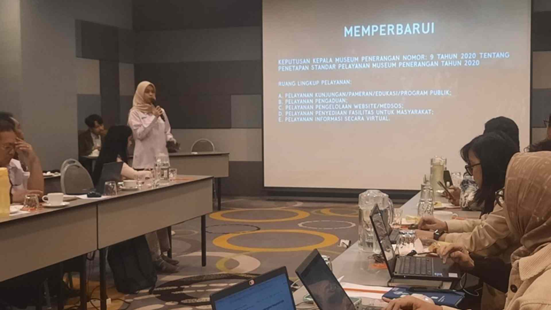 “Jadi saat ini ada enam total layanan yang ada di Museum Penerangan,” ujar Alvio Putri Matahari, Ketua Tim Pelayanan Publik Muspen, dalam Forum Komunikasi Publik Penyusunan Standar Pelayanan Museum Penerangan di Jakarta, Senin (30/6). Keenam layanan tersebut mencakup: kunjungan langsung, kunjungan kelompok atau virtual experience, peminjaman ruang dan bangunan, peminjaman koleksi, pelayanan penelitian ilmiah, serta layanan perpustakaan mini.