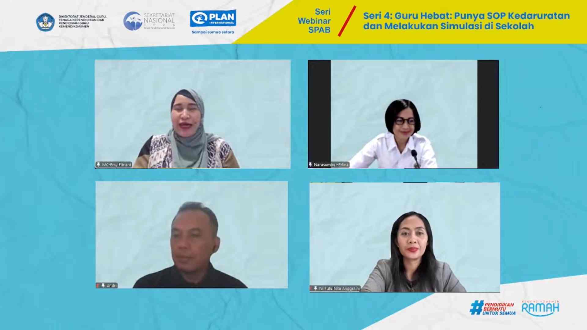 Tak hanya sekadar pendidik, guru kini diposisikan sebagai agen pelindung anak dan pelopor budaya aman di sekolah. Webinar ini menjadi bukti konkret bahwa SPAB bukan sebatas program pelengkap, melainkan fondasi sistem pendidikan adaptif terhadap risiko bencana maupun kekerasan.