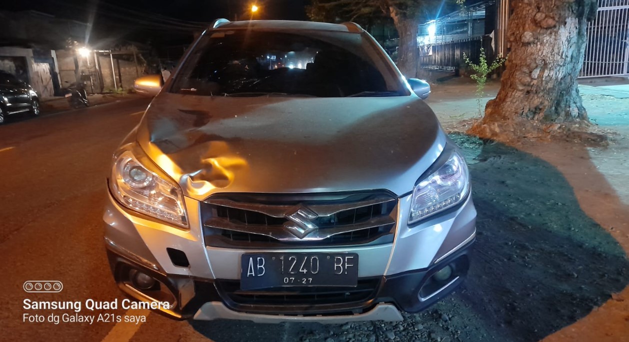 Tampak bagian depan mobil Suzuki AB 1240 BF mengalami kerusakan cukup parah usai menabrak pejalan kaki di depan toko Clandys, Jalan Bantul, Rabu malam (30/7/2025).