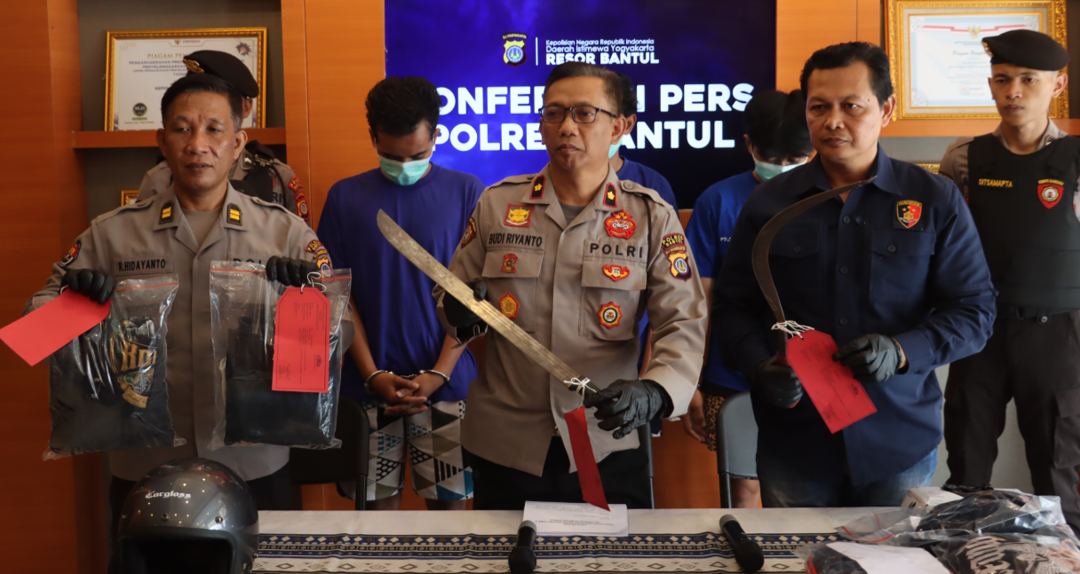 Kapolsek Bantul, Kompol Budi Riyanto, mengatakan para pelaku yang ditangkap berinisial OJA (19), MZA (19), FMP (22), serta seorang pelaku di bawah umur, NRP (17). Semuanya merupakan warga Kapanewon Bantul. “Empat pelaku sudah kami amankan, termasuk seorang anak di bawah umur,” ujarnya saat konferensi pers di Mapolres Bantul, Jumat (22/8/2025).