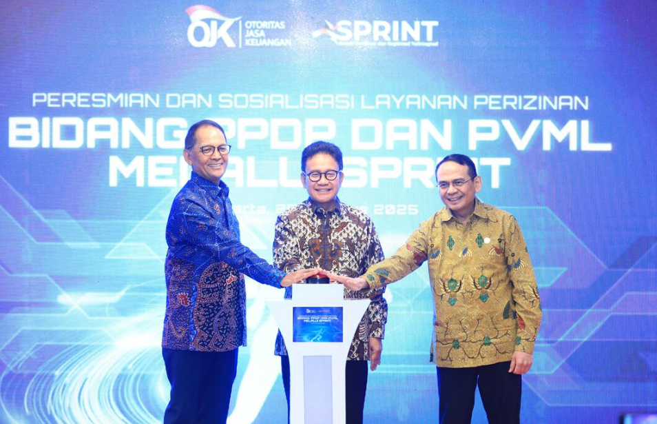 Peresmian layanan SPRINT digelar di Gedung Wisma Mulia 2 Jakarta pada Senin (25/8/2025). Acara ini dipimpin Wakil Ketua Dewan Komisioner OJK Mirza Adityaswara bersama Kepala Eksekutif Pengawas PPDP Ogi Prastomiyono dan Kepala Eksekutif Pengawas PVML Agusman. Sosialisasi turut diikuti pengurus asosiasi serta perwakilan industri melalui tatap muka langsung dan daring.