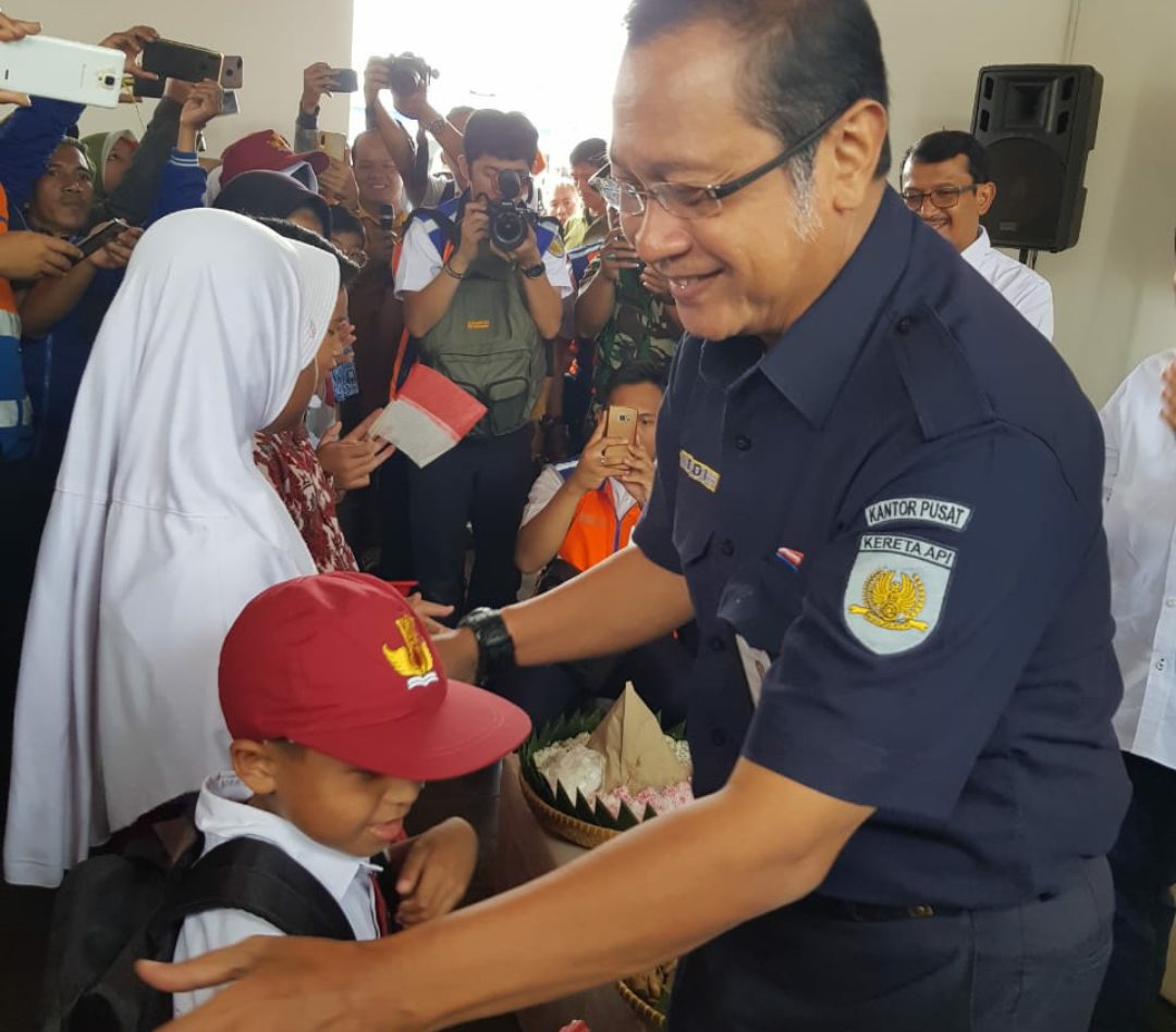 Dalam kesempatan tersebut, PT KAI juga memberikan 300 paket alat tulis kepada anak-anak sekolah di beberapa titik jalur reaktivasi Cibatu-Garut.