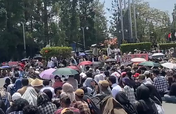 Headline.co.id (Sleman) ~ Ratusan massa yang tergabung dalam Aliansi Jogja Memanggil menggelar aksi demonstrasi di Bundaran Universitas Gadjah Mada (UGM), Sleman, Senin (1/9/2025). Aksi ini menyoroti kasus kematian dua korban demonstrasi, yakni Affan Kurniawan, pengemudi ojek daring, dan Rheza Sendy Pratama, mahasiswa Amikom Yogyakarta. Massa mendesak adanya reformasi menyeluruh di tubuh Polri dan TNI serta menuntut Presiden Prabowo Subianto dan Wakil Presiden Gibran Rakabuming Raka untuk mundur dari jabatannya.