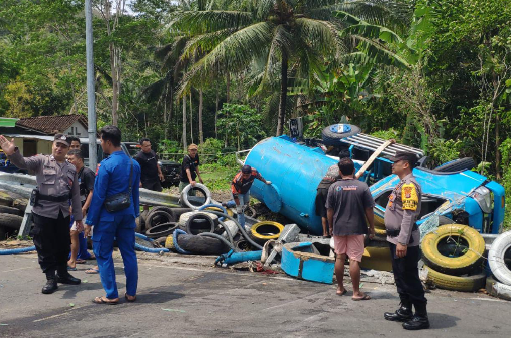 Headline.co.id (Kulon Progo) ~ Sebuah truk tangki penyedot air limbah mengalami kecelakaan tunggal di Simpang Tiga Balong, Sermo Lor, Hargowilis, Kokap, Kulon Progo, Kamis (4/9/2025) sekitar pukul 11.30 WIB. Truk bernomor polisi D 8123 DF tersebut terguling setelah diduga mengalami rem blong saat melintas di jalan menurun. Akibat peristiwa itu, sopir dan kernet truk mengalami luka, sementara kerugian materi diperkirakan mencapai Rp5 juta.