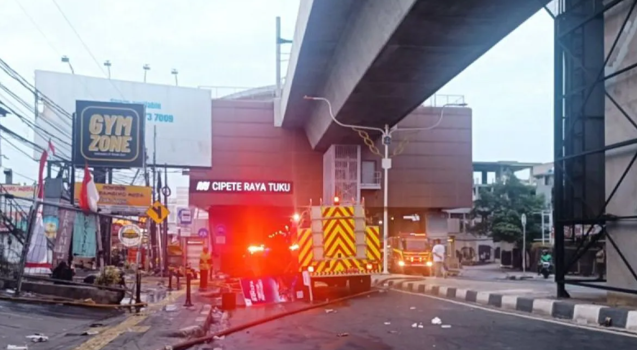 Pantauan di lapangan, deretan mobil pemadam kebakaran masih terparkir di dekat Stasiun MRT Cipete Raya. Petugas terus menyemprotkan air ke titik-titik yang berpotensi memunculkan api kembali.