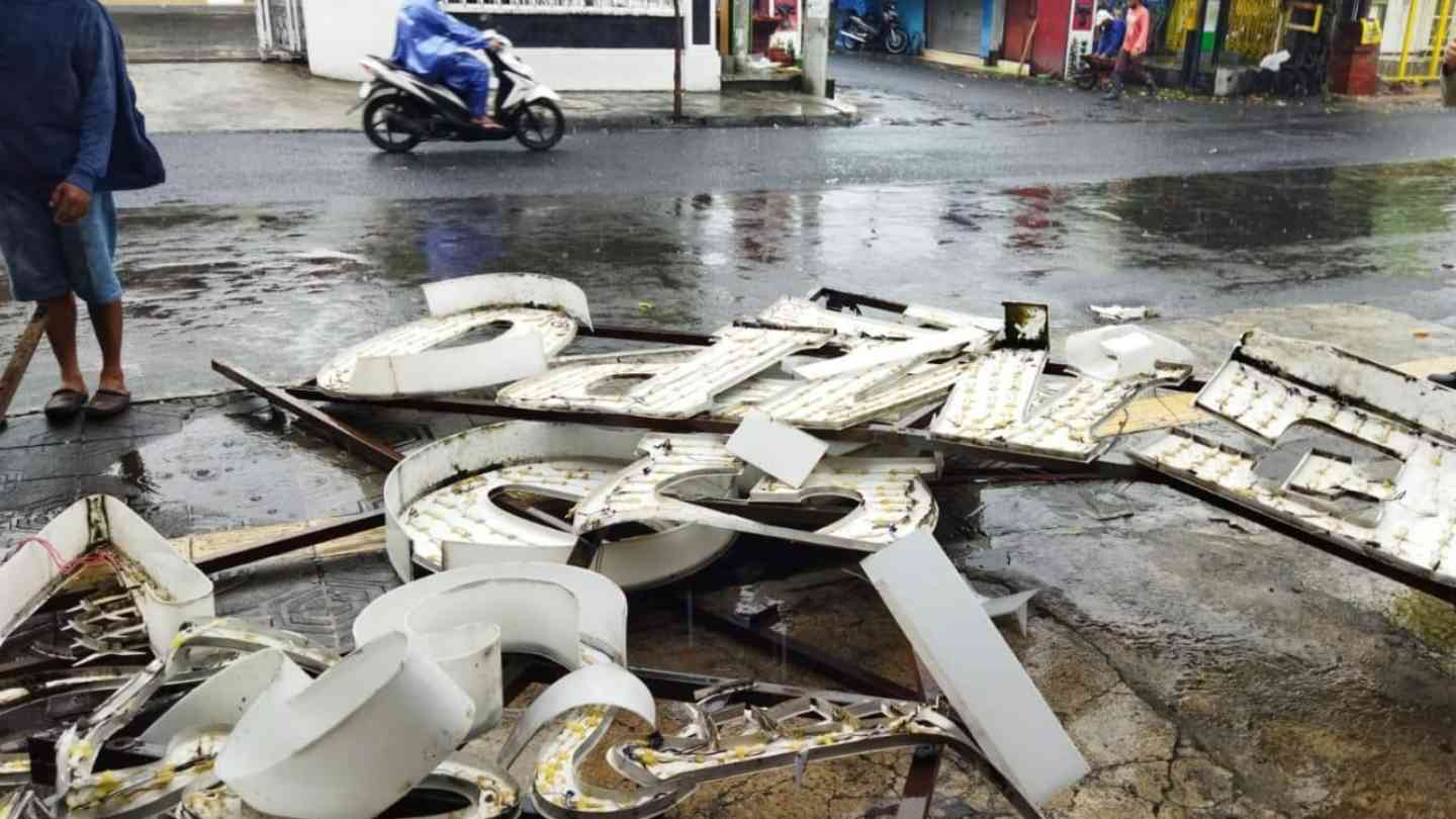 Kasihumas Polresta Yogyakarta, Iptu Gandung Harjunadi, S.H., dalam keterangan tertulis kepada Headline.co.id menjelaskan bahwa papan nama yang menempel pada dinding toko tiba-tiba roboh akibat terpaan angin kencang.