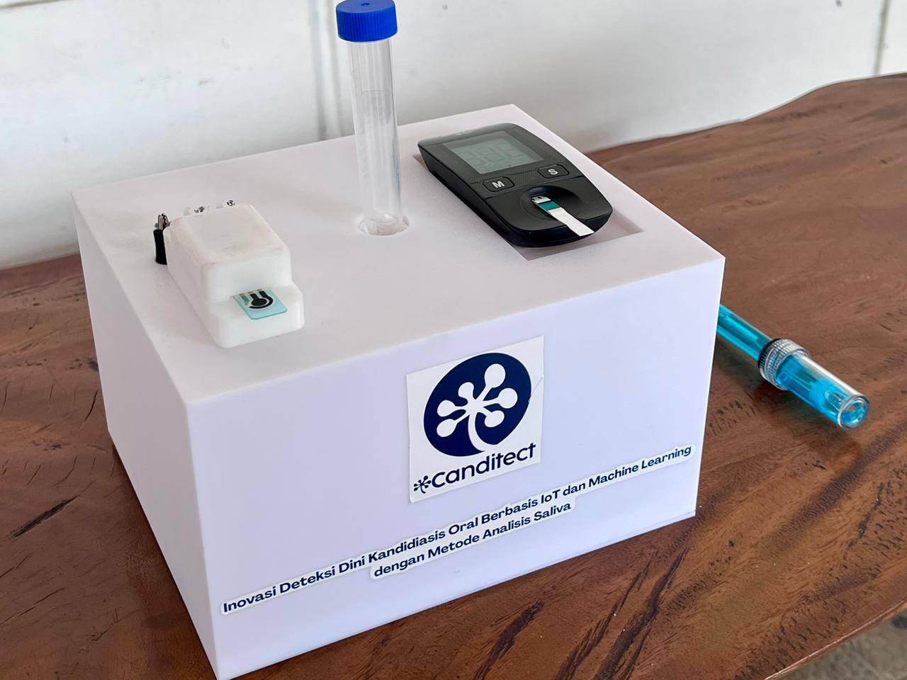Menanggapi rendahnya kesadaran masyarakat dan keterbatasan alat diagnosis dini, tim mahasiswa Universitas Gadjah Mada (UGM) mengembangkan inovasi bernama Canditect. Alat ini merupakan perangkat deteksi dini kandidiasis oral berbasis Internet of Things (IoT) dan machine learning. Tim Program Kreativitas Mahasiswa Karsa Cipta (PKM-KC) yang mengembangkan alat ini dipimpin oleh Naila Evelyna Difani Putri, bersama Maria Benita Amarantha Elani dari Kedokteran Gigi, Irfan Satrio Wibowo dan Attahya Dzikra Hidayat dari Teknologi Rekayasa Internet, serta Aziz Nofikri dari Teknik Mesin.