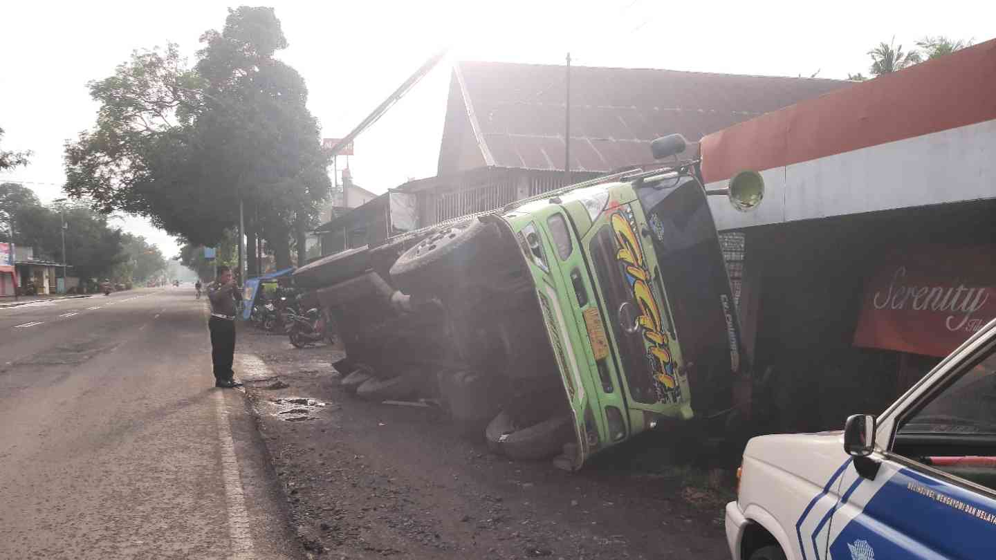 Akibat insiden tersebut, bagian tebeng kiri dan dek bawah kiri truk mengalami kerusakan. Selain itu, pagar dan bagian atap toko bangunan milik Anez juga terdampak. Total kerugian materi diperkirakan mencapai Rp4,2 juta, terdiri dari kerusakan truk sebesar sekitar Rp700 ribu dan kerusakan toko sekitar Rp3,5 juta.