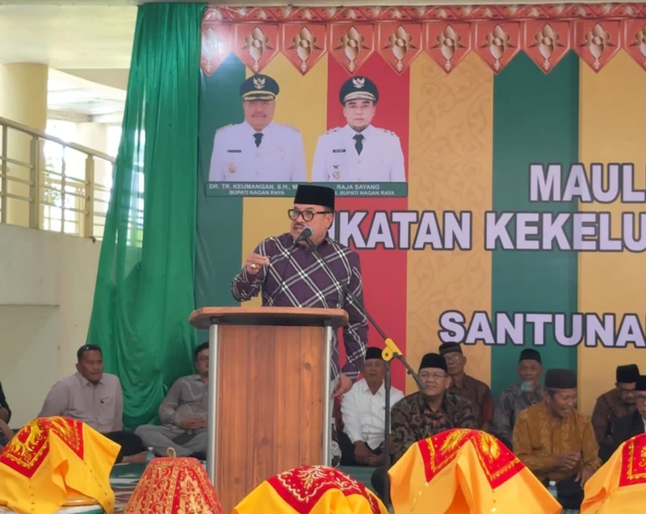 Headline.co.id, Banda Aceh ~ Bupati Nagan Raya, TR Keumangan, menghadiri perayaan Maulid Nabi Muhammad SAW 1447 Hijriah/2025 Masehi yang diadakan oleh Ikatan Keluarga Nagan Raya (IKNR) Banda Aceh. Acara ini berlangsung di Aula Politeknik Aceh, Banda Aceh, pada Minggu (9/11/2025). Dalam kesempatan tersebut, Bupati TR Keumangan, yang akrab disapa TRK, menyampaikan rasa bangga dan apresiasi kepada warga Nagan Raya di perantauan yang tetap menunjukkan kepedulian terhadap daerah asal mereka.