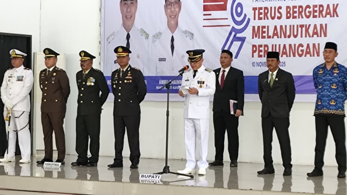 Headline.co.id, Kayong Utara ~ Pemerintah Kabupaten Kayong Utara menyelenggarakan upacara peringatan Hari Pahlawan Nasional Tahun 2025 di Aula Istana Rakyat Sukadana, yang juga dikenal sebagai Pendopo Bupati, pada Senin, 10 November 2025. Bupati Kayong Utara, Romi Wijaya, bertindak sebagai inspektur upacara dan membacakan amanat dari Menteri Sosial Republik Indonesia, Saifullah Yusuf, dalam rangka memperingati Hari Pahlawan tahun ini.