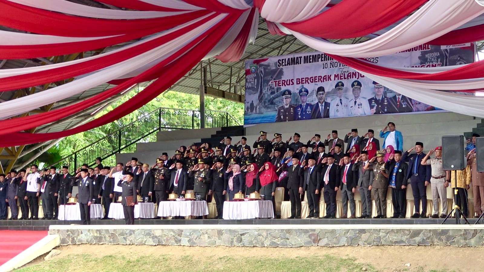 Headline.co.id, Pangkep ~ Wakil Bupati Pangkajene dan Kepulauan (Pangkep), Abd Rahman Assagaf, memimpin upacara peringatan Hari Pahlawan 2025 di Alun-Alun Lapangan Citra Mas pada Senin (10/11/2025). Dalam acara tersebut, ia menyampaikan amanat dari Menteri Sosial Republik Indonesia yang mengajak seluruh elemen bangsa untuk meneladani ketulusan, keberanian, dan semangat mengutamakan kepentingan bangsa di atas segalanya.